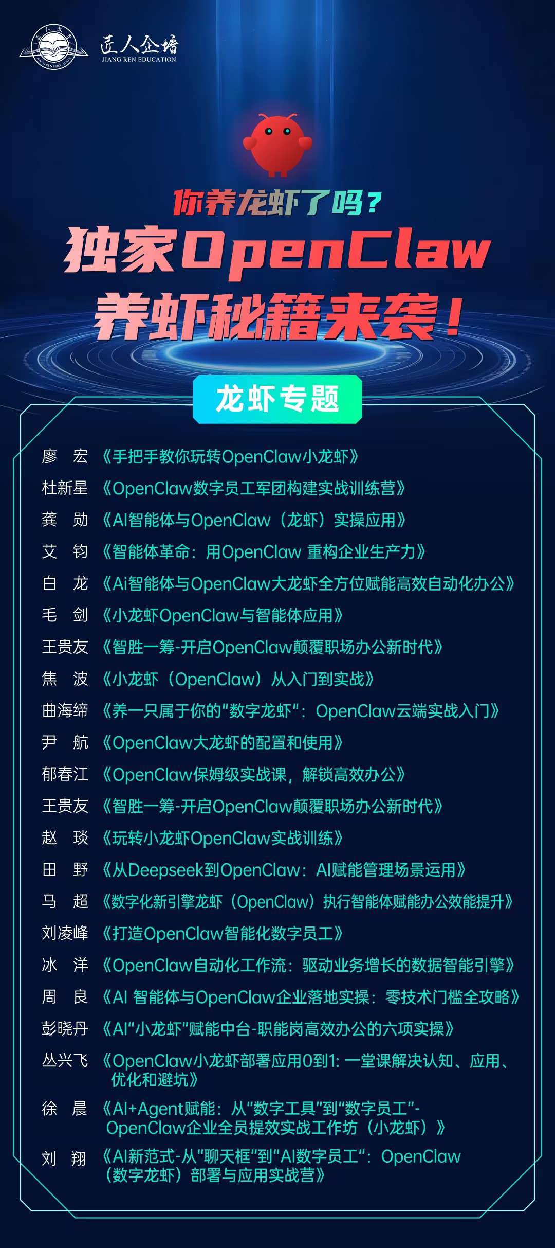 最新的实操OpenClaw课程已出炉,若您企业有相关培训需求欢迎联系获取最新【OpenClaw】专题内容。